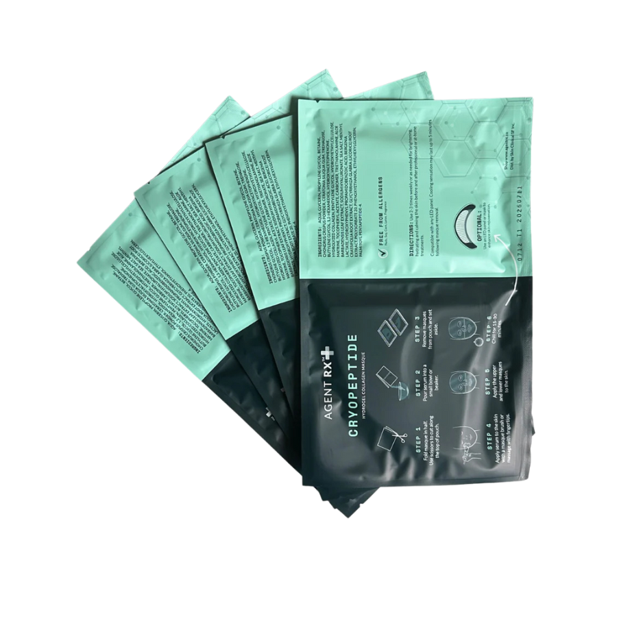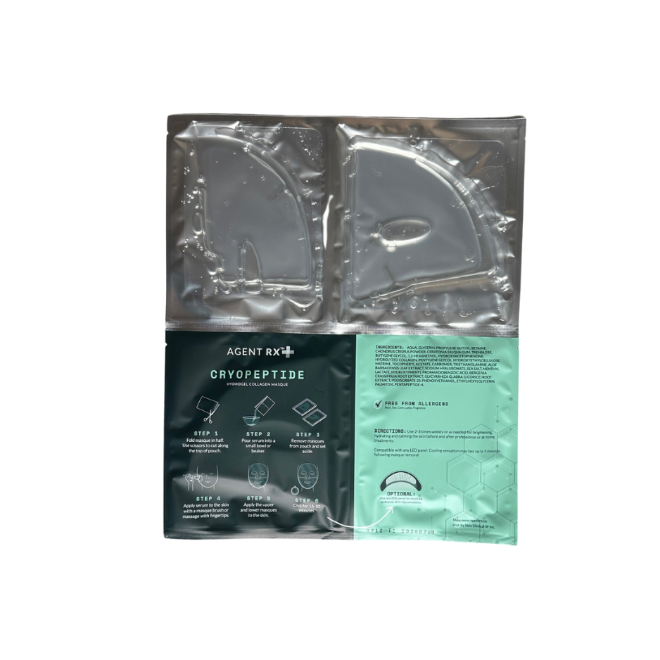 CryoPeptide Masque includes a powerful combination of ingredients, including menthol-lactate to provide soothing with a cooling effect, brightening agent Licorice root to give the skin an immediate glow and Palmitoyl peptide-4 to reduce the look of fine lines and wrinkles. The collagen hydrogel matrix provides occlusion to the skin so it can drink up all the benefits. Can be used in conjunction with an at-home LED device! The result is plumped up and luxuriously hydrated skin.
